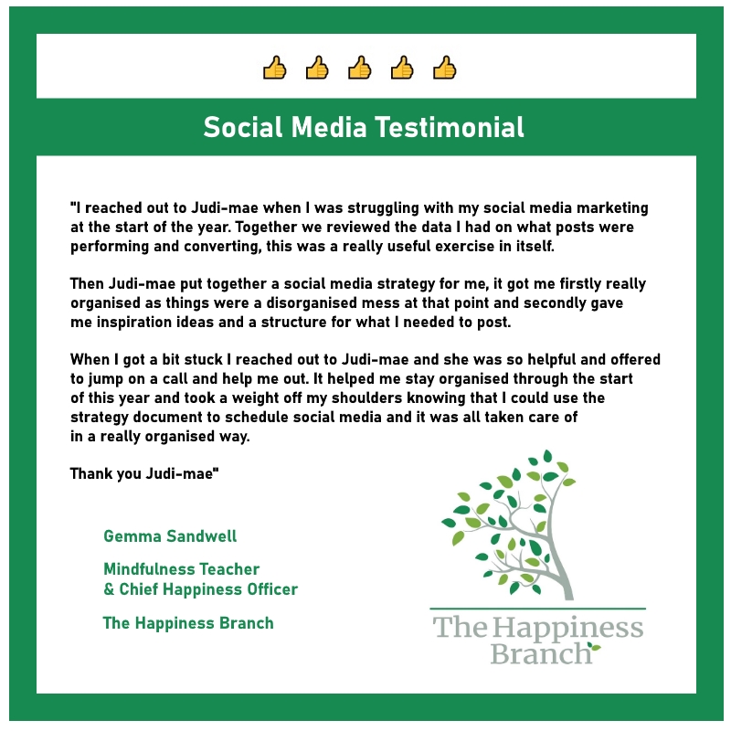 “I reached out to Judi-mae when I was struggling with my social media marketing at the start of the year. Together we reviewed the data I had on what posts were performing and converting, this was a really useful exercise in itself. Then Judi-mae put together a social media strategy for me, it got me firstly really organised as things were a disorganised mess at that point and secondly gave me inspiration ideas and a structure for what I needed to post.