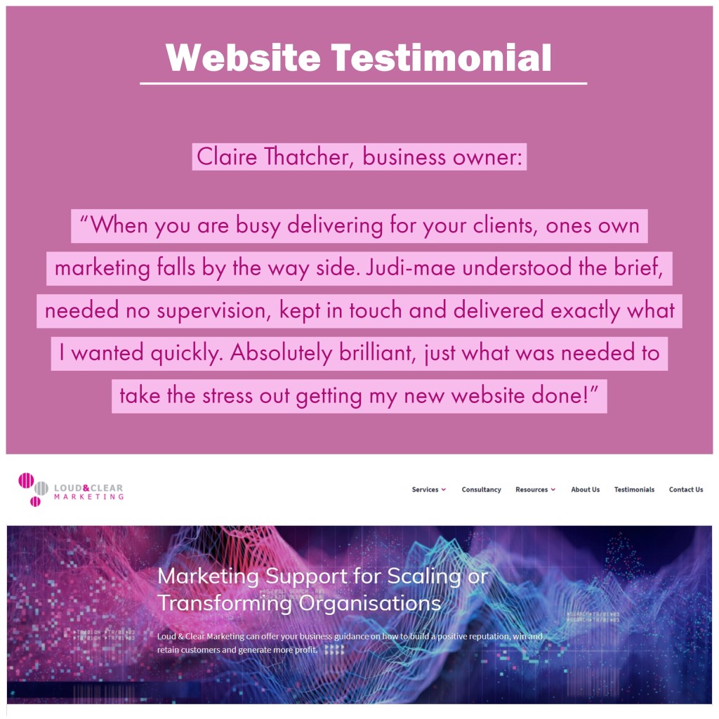 “When you are busy delivering for your clients, one’s own marketing falls by the wayside. Judi-mae understood the brief, needed no supervision, kept in touch and delivered exactly what I wanted quickly. Absolutely brilliant, just what was needed to take the stress out getting my new website done!”