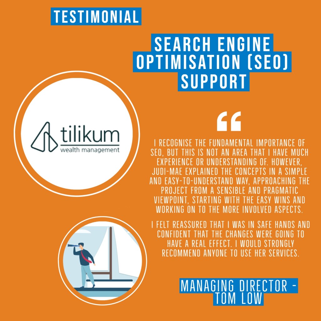 “Although I recognise the fundamental importance of SEO and good marketing of a website, this is not an area that I have much experience or understanding of. However, Judi-mae explained the concepts and plan in a simple and easy-to-understand way, approaching the project from a sensible and pragmatic viewpoint, starting with the easy wins and working on to the more involved aspects. Throughout I felt reassured that I was in safe hands and confident that the changes were going to have a real effect. I would strongly recommend anyone to use her services.”