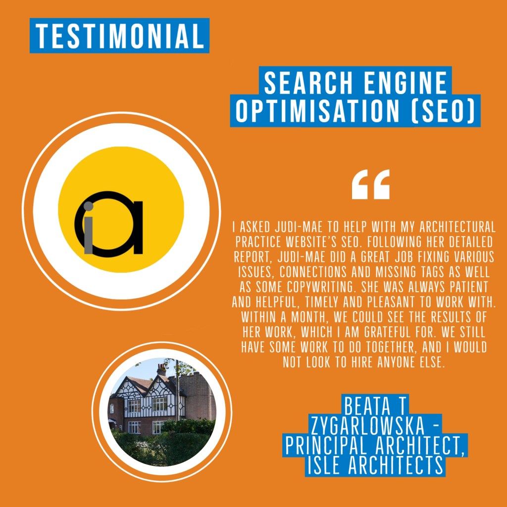 “We met at the Norfolk Chambers of Commerce Netwalking event at Langley School in 2021. After months of lockdowns, we both enjoyed a face-to-face conversation, talking about our work, life and the possibility of cooperation. A few months later, I asked Judi-mae to help with my architectural practice website’s SEO.