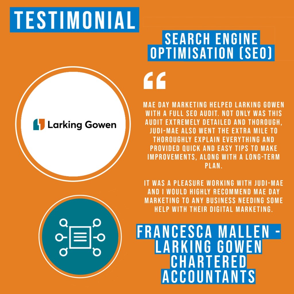 Mae Day Marketing helped Larking Gowen with a full SEO audit. Not only was this audit extremely detailed and thorough, Judi-mae also went the extra mile to thoroughly explain everything and provided quick and easy tips to make improvements, along with a long-term plan.